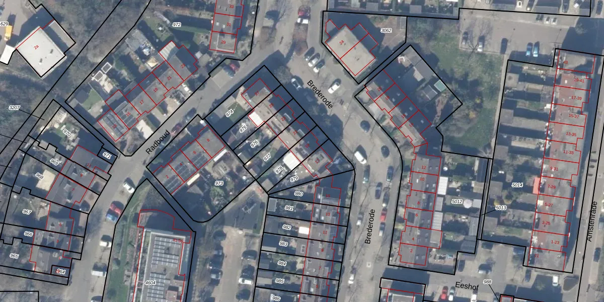 Het perceel waarop Brederode 19 staat heeft een oppervlakte van 162 m². Dit is een middelgroot perceel. De perceeloppervlakte wordt geregistreerd door het Kadaster. Gedetailleerde informatie over de maten van dit perceel kunt u vinden in het rapport Kadastrale kaart met maatvoering van Brederode 19.