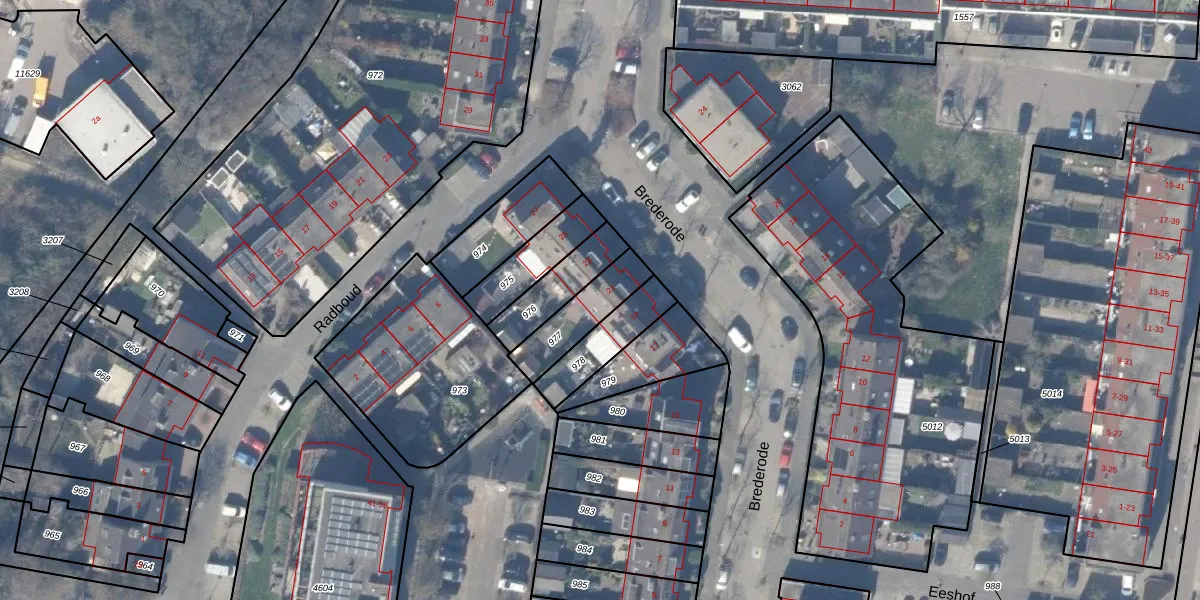 Het perceel waarop Brederode 21 staat heeft een oppervlakte van 163 m². Dit is een middelgroot perceel. De perceeloppervlakte wordt geregistreerd door het Kadaster. Gedetailleerde informatie over de maten van dit perceel kunt u vinden in het rapport Kadastrale kaart met maatvoering van Brederode 21.