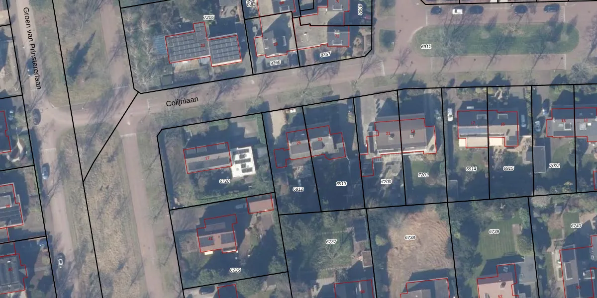 Colijnlaan 25 is gelegen op kadastraal perceel HZN00B6912. Deze kadastrale aanduiding is uniek en wordt gebruikt door het Kadaster om eigendomsrechten en andere zakelijke rechten vast te leggen. Het perceel maakt onderdeel uit van de kadastrale gemeente Huizen.