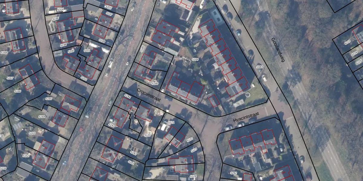 Het perceel waarop Crocusstraat 3 staat heeft een oppervlakte van 3150 m². Dit is een zeer groot perceel. De perceeloppervlakte wordt geregistreerd door het Kadaster. Gedetailleerde informatie over de maten van dit perceel kunt u vinden in het rapport Kadastrale kaart met maatvoering van Crocusstraat 3.