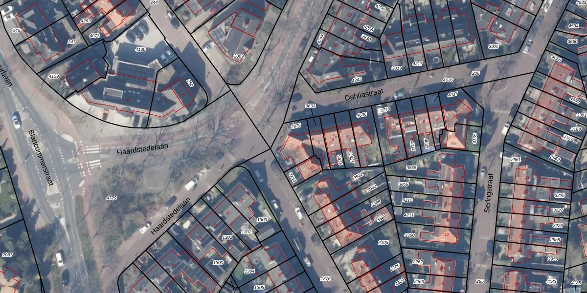 Het perceel waarop Dahliastraat 2 staat heeft een oppervlakte van 173 m². Dit is een middelgroot perceel. De perceeloppervlakte wordt geregistreerd door het Kadaster. Gedetailleerde informatie over de maten van dit perceel kunt u vinden in het rapport Kadastrale kaart met maatvoering van Dahliastraat 2.