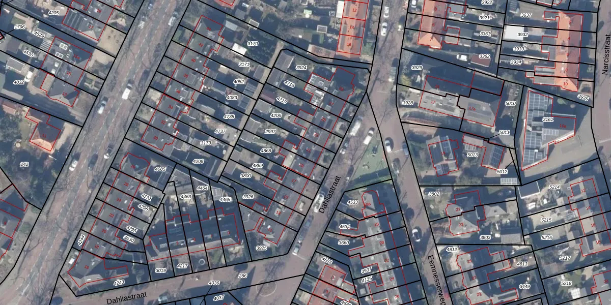 Het perceel waarop Dahliastraat 21 staat heeft een oppervlakte van 174 m². Dit is een middelgroot perceel. De perceeloppervlakte wordt geregistreerd door het Kadaster. Gedetailleerde informatie over de maten van dit perceel kunt u vinden in het rapport Kadastrale kaart met maatvoering van Dahliastraat 21.