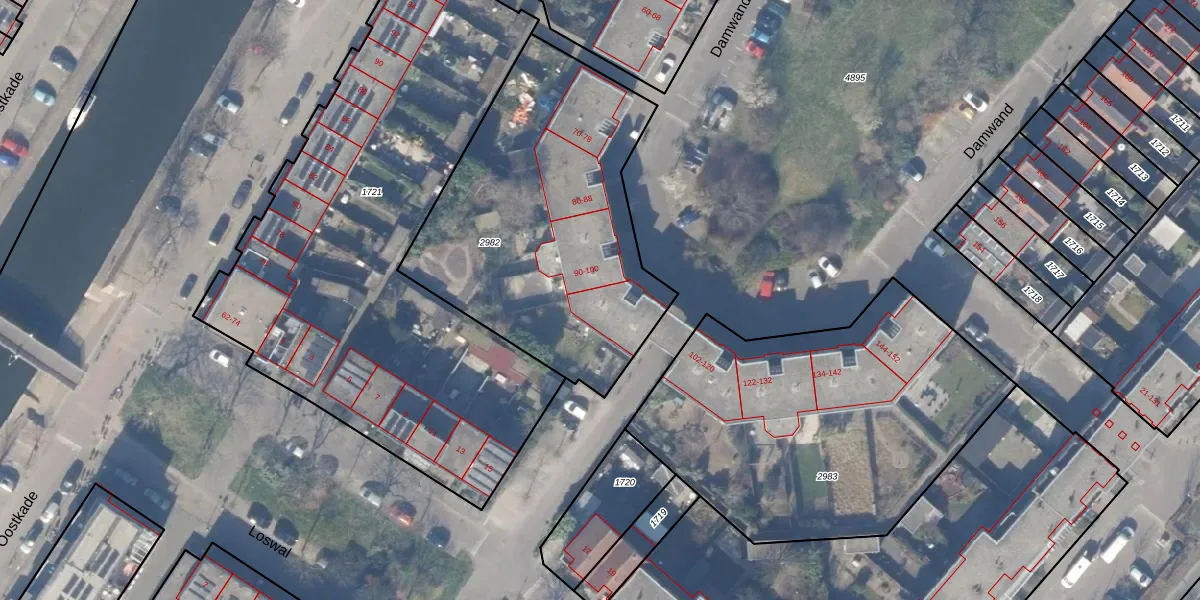 Het perceel waarop Damwand 104 staat heeft een oppervlakte van 1563 m². Dit is een zeer groot perceel. De perceeloppervlakte wordt geregistreerd door het Kadaster. Gedetailleerde informatie over de maten van dit perceel kunt u vinden in het rapport Kadastrale kaart met maatvoering van Damwand 104.