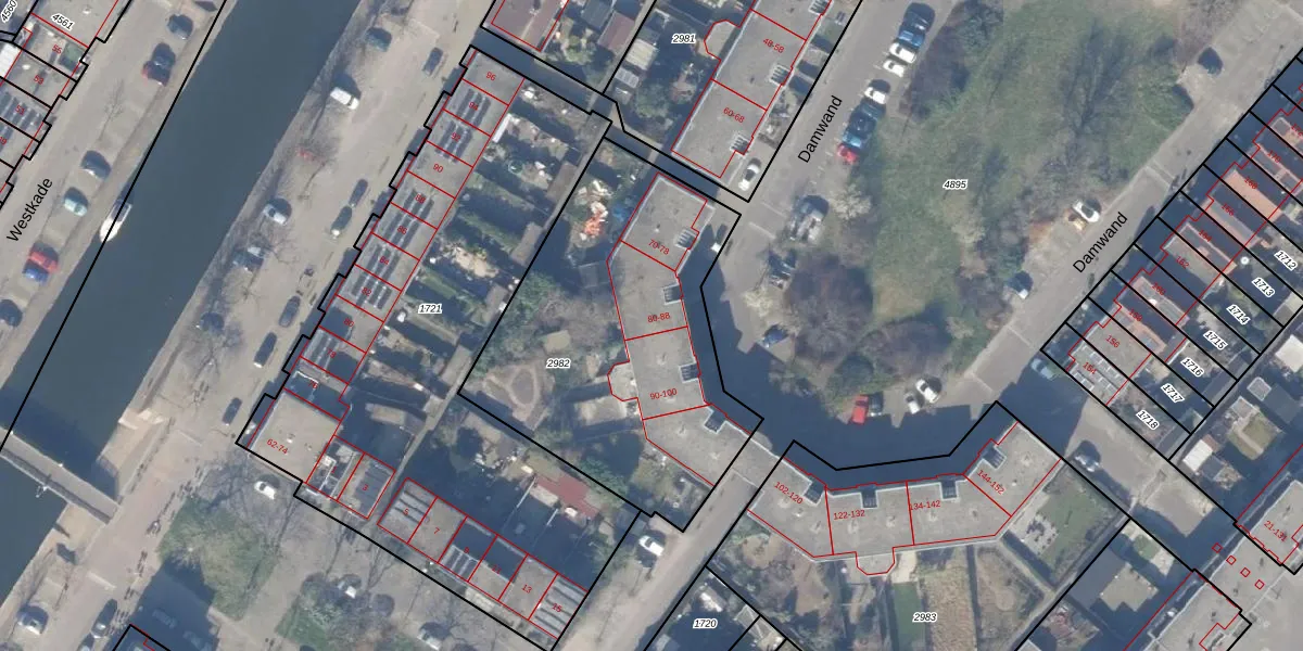 Het perceel waarop Damwand 84 staat heeft een oppervlakte van 1563 m². Dit is een zeer groot perceel. De perceeloppervlakte wordt geregistreerd door het Kadaster. Gedetailleerde informatie over de maten van dit perceel kunt u vinden in het rapport Kadastrale kaart met maatvoering van Damwand 84.