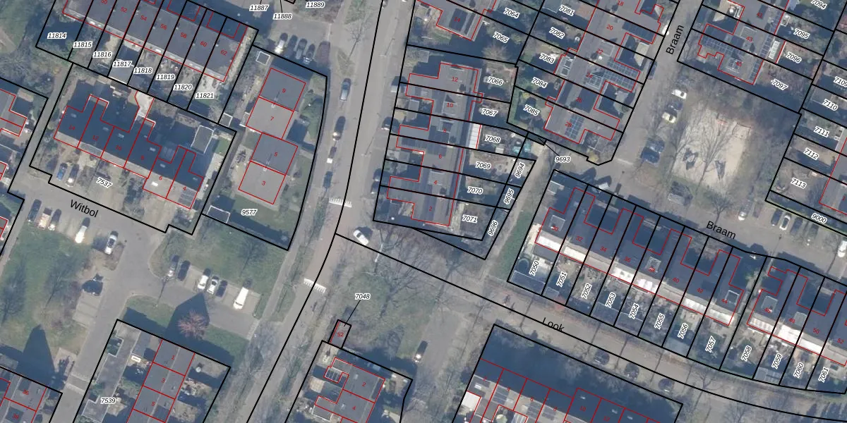 Gebruik de zoekbalk of klik op een perceel voor informatie over de adressen binnen dit perceel.