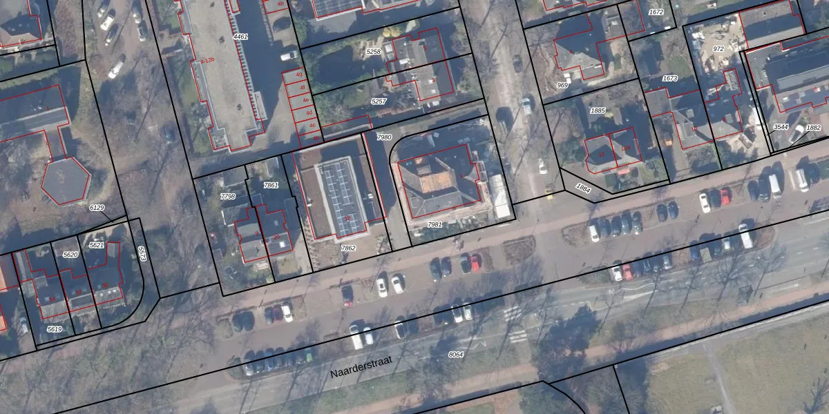 Het perceel waarop het adres ligt is HZN00-B-7981. De afkorting 'HZN00' staat voor kadastrale gemeente Huizen. Het perceel is kleiner dan gemiddeld in Huizen. Het perceel is 660 m² groot, terwijl het gemiddelde ligt op 1437,02 m². Het kleinste perceel in de kadastrale gemeente is 0 m² groot. De grootste perceeloppervlakte is 4,26 km². Op het perceel liggen in totaal 10 adressen. De huidige grenzen van het perceel zijn digitaal in de Basisregistratie Kadaster (BRK) geregistreerd op 14-06-2000.