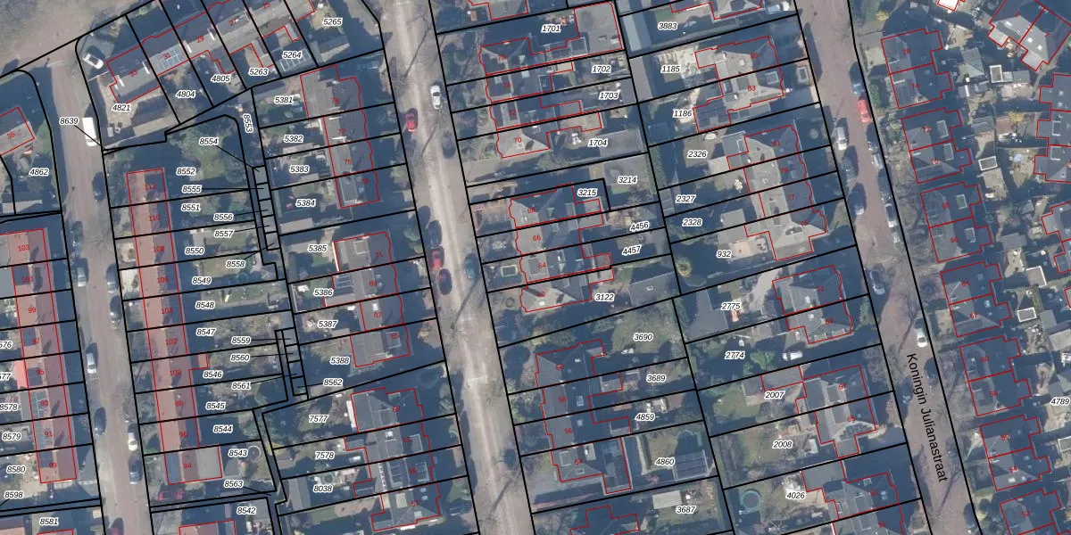 Het perceel waarop De Ruyterstraat 64 staat heeft een oppervlakte van 188 m². Dit is een middelgroot perceel. De perceeloppervlakte wordt geregistreerd door het Kadaster. Gedetailleerde informatie over de maten van dit perceel kunt u vinden in het rapport Kadastrale kaart met maatvoering van De Ruyterstraat 64.