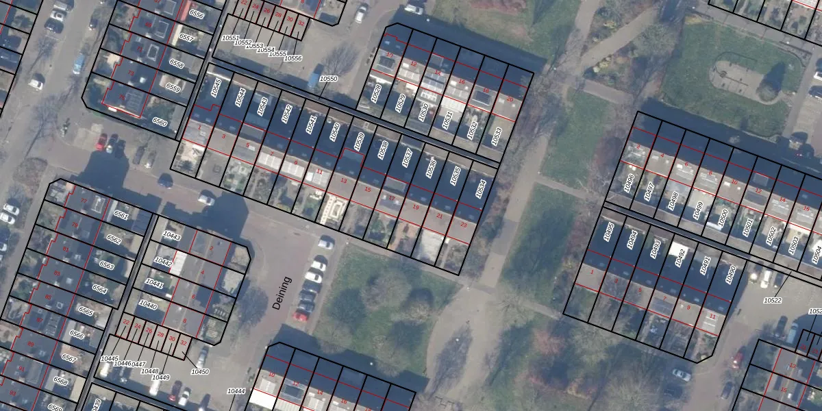 Het perceel waarop Deining 19 staat heeft een oppervlakte van 171 m². Dit is een middelgroot perceel. De perceeloppervlakte wordt geregistreerd door het Kadaster. Gedetailleerde informatie over de maten van dit perceel kunt u vinden in het rapport Kadastrale kaart met maatvoering van Deining 19.