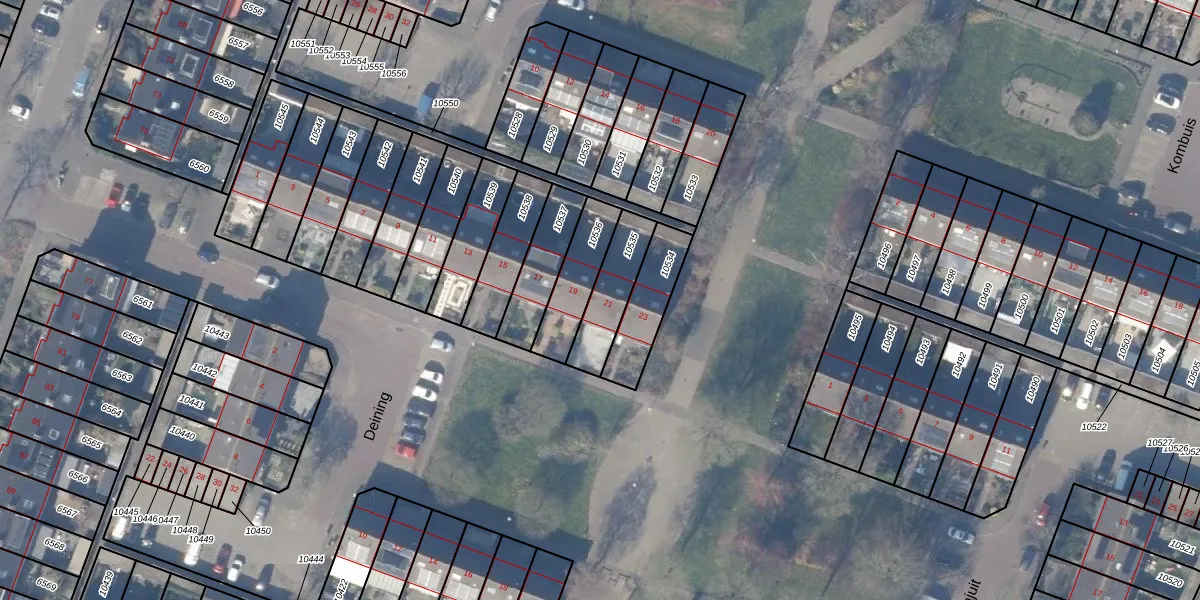 Het perceel waarop Deining 21 staat heeft een oppervlakte van 171 m². Dit is een middelgroot perceel. De perceeloppervlakte wordt geregistreerd door het Kadaster. Gedetailleerde informatie over de maten van dit perceel kunt u vinden in het rapport Kadastrale kaart met maatvoering van Deining 21.