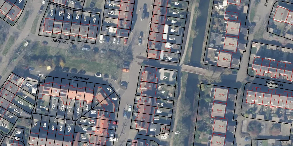 Gebruik de zoekbalk of klik op een perceel voor informatie over de adressen binnen dit perceel.
