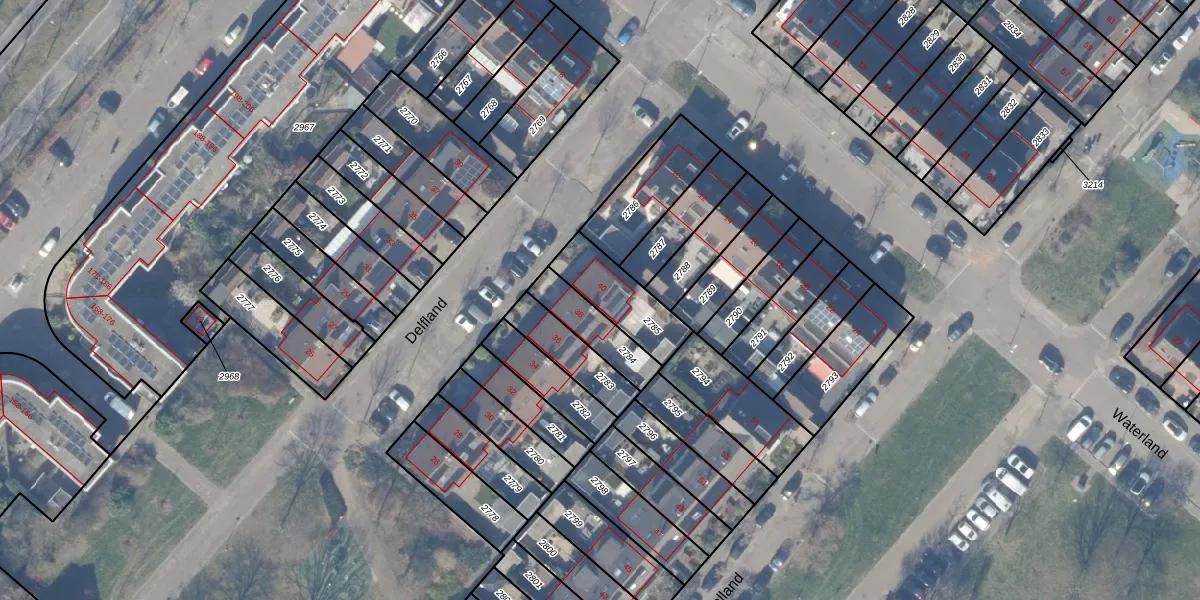 Het perceel waarop Delfland 40 staat heeft een oppervlakte van 186 m². Dit is een middelgroot perceel. De perceeloppervlakte wordt geregistreerd door het Kadaster. Gedetailleerde informatie over de maten van dit perceel kunt u vinden in het rapport Kadastrale kaart met maatvoering van Delfland 40.