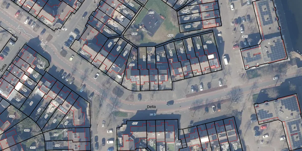 Het perceel waarop Delta 14 staat heeft een oppervlakte van 174 m². Dit is een middelgroot perceel. De perceeloppervlakte wordt geregistreerd door het Kadaster. Gedetailleerde informatie over de maten van dit perceel kunt u vinden in het rapport Kadastrale kaart met maatvoering van Delta 14.