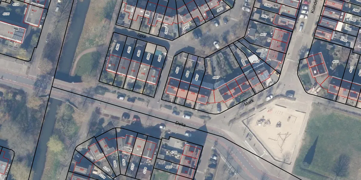 Het perceel waarop Delta 160 staat heeft een oppervlakte van 164 m². Dit is een middelgroot perceel. De perceeloppervlakte wordt geregistreerd door het Kadaster. Gedetailleerde informatie over de maten van dit perceel kunt u vinden in het rapport Kadastrale kaart met maatvoering van Delta 160.