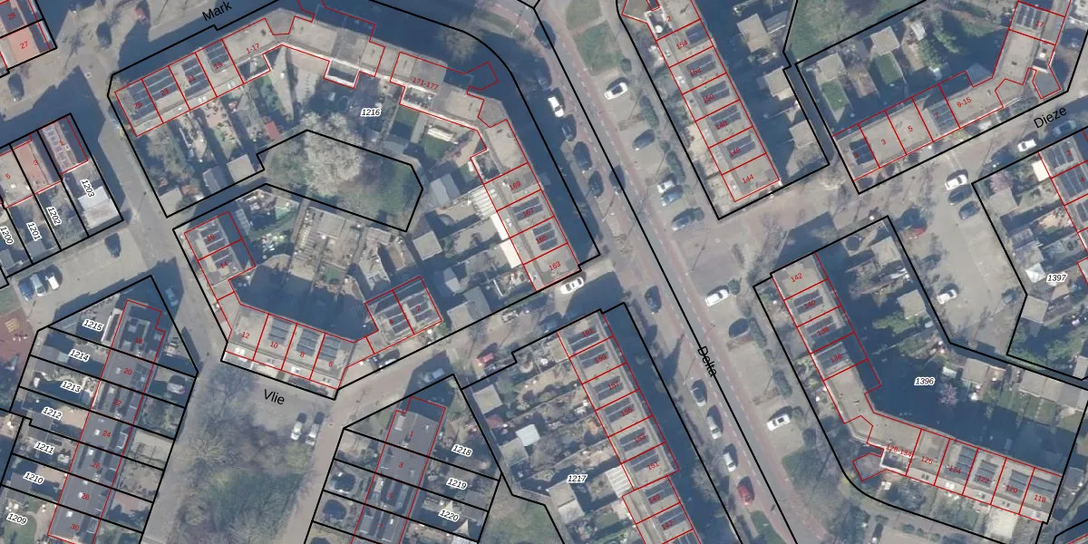 Delta 163 is gelegen op kadastraal perceel HZN00E1216. Deze kadastrale aanduiding is uniek en wordt gebruikt door het Kadaster om eigendomsrechten en andere zakelijke rechten vast te leggen. Het perceel maakt onderdeel uit van de kadastrale gemeente Huizen.