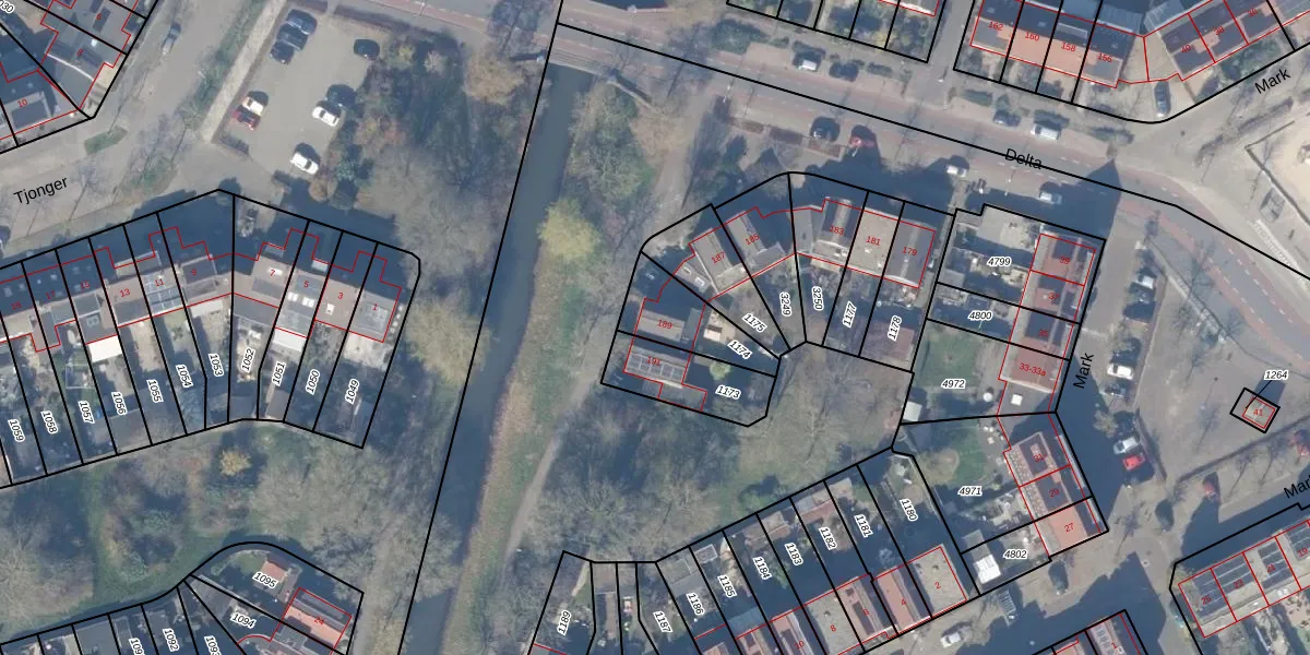 Het perceel waarop Delta 189 staat heeft een oppervlakte van 191 m². Dit is een middelgroot perceel. De perceeloppervlakte wordt geregistreerd door het Kadaster. Gedetailleerde informatie over de maten van dit perceel kunt u vinden in het rapport Kadastrale kaart met maatvoering van Delta 189.