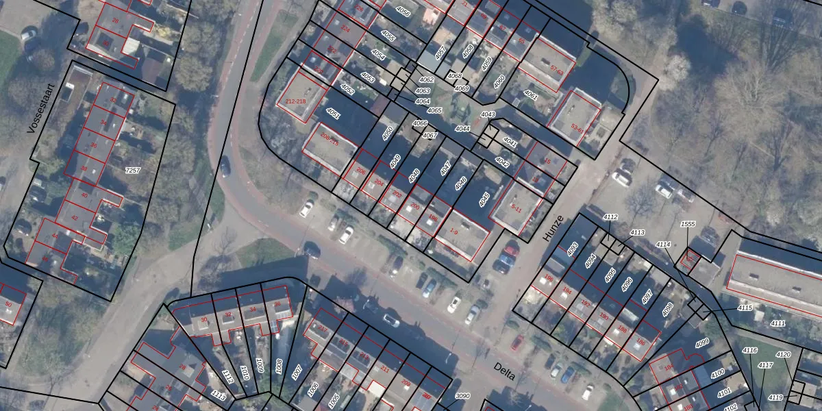 Delta 200 is gelegen op kadastraal perceel HZN00E4047. Deze kadastrale aanduiding is uniek en wordt gebruikt door het Kadaster om eigendomsrechten en andere zakelijke rechten vast te leggen. Het perceel maakt onderdeel uit van de kadastrale gemeente Huizen.