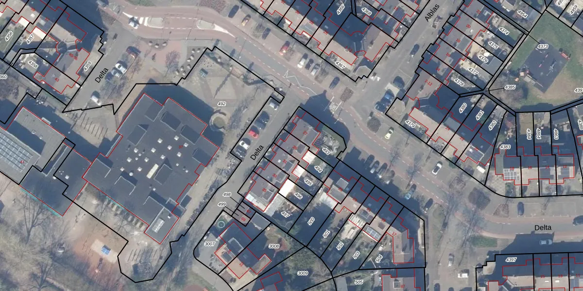 Gebruik de zoekbalk of klik op een perceel voor informatie over de adressen binnen dit perceel.