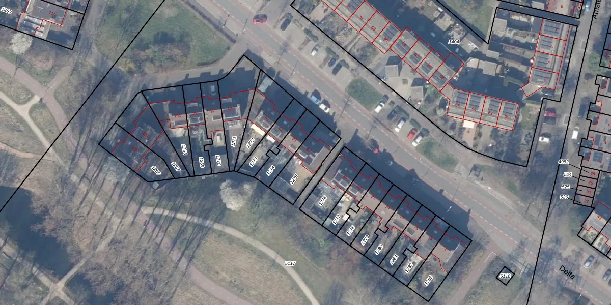 Het perceel waarop Delta 87 staat heeft een oppervlakte van 250 m². Dit is een middelgroot perceel. De perceeloppervlakte wordt geregistreerd door het Kadaster. Gedetailleerde informatie over de maten van dit perceel kunt u vinden in het rapport Kadastrale kaart met maatvoering van Delta 87.