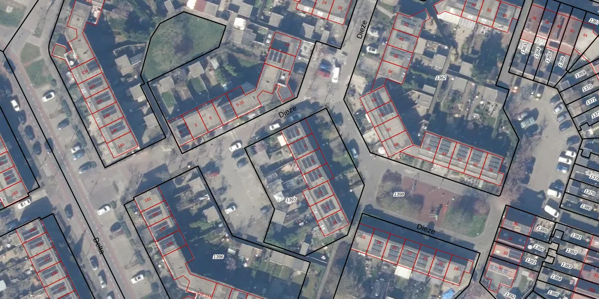 Het perceel waarop Dieze 4 staat heeft een oppervlakte van 1245 m². Dit is een zeer groot perceel. De perceeloppervlakte wordt geregistreerd door het Kadaster. Gedetailleerde informatie over de maten van dit perceel kunt u vinden in het rapport Kadastrale kaart met maatvoering van Dieze 4.