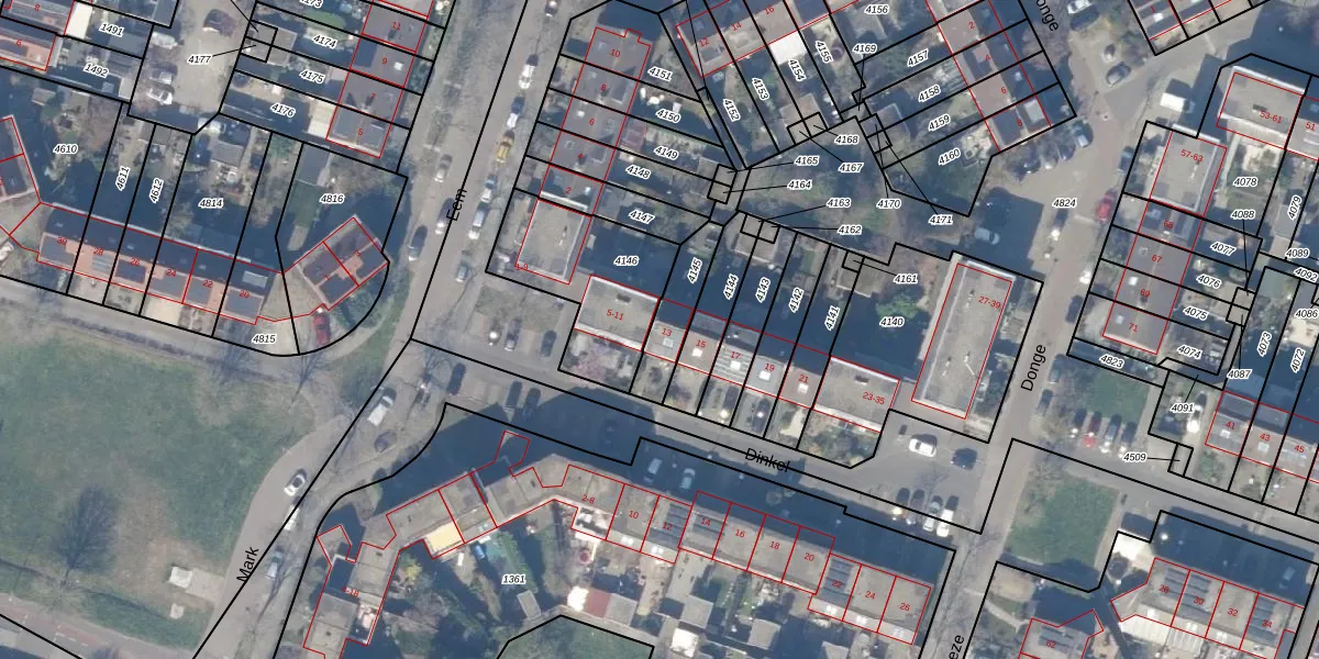 Gebruik de zoekbalk of klik op een perceel voor informatie over de adressen binnen dit perceel.