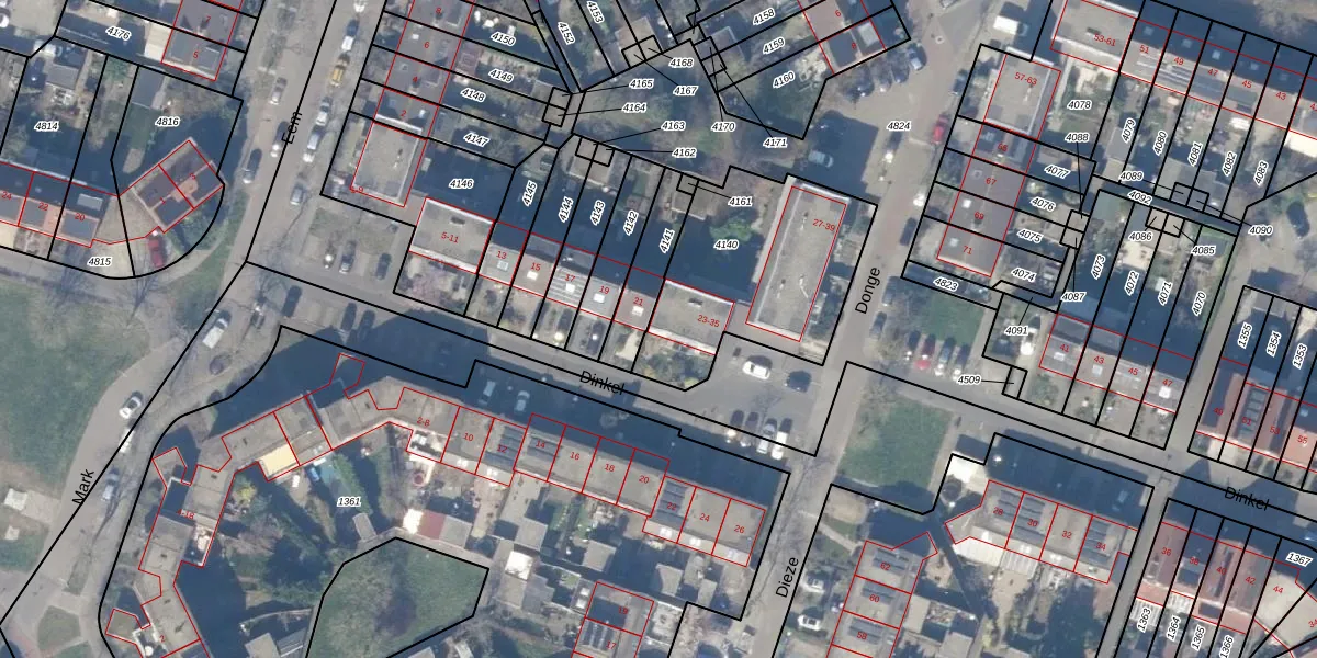 Dinkel 25 is gelegen op kadastraal perceel HZN00E4140. Deze kadastrale aanduiding is uniek en wordt gebruikt door het Kadaster om eigendomsrechten en andere zakelijke rechten vast te leggen. Het perceel maakt onderdeel uit van de kadastrale gemeente Huizen.
