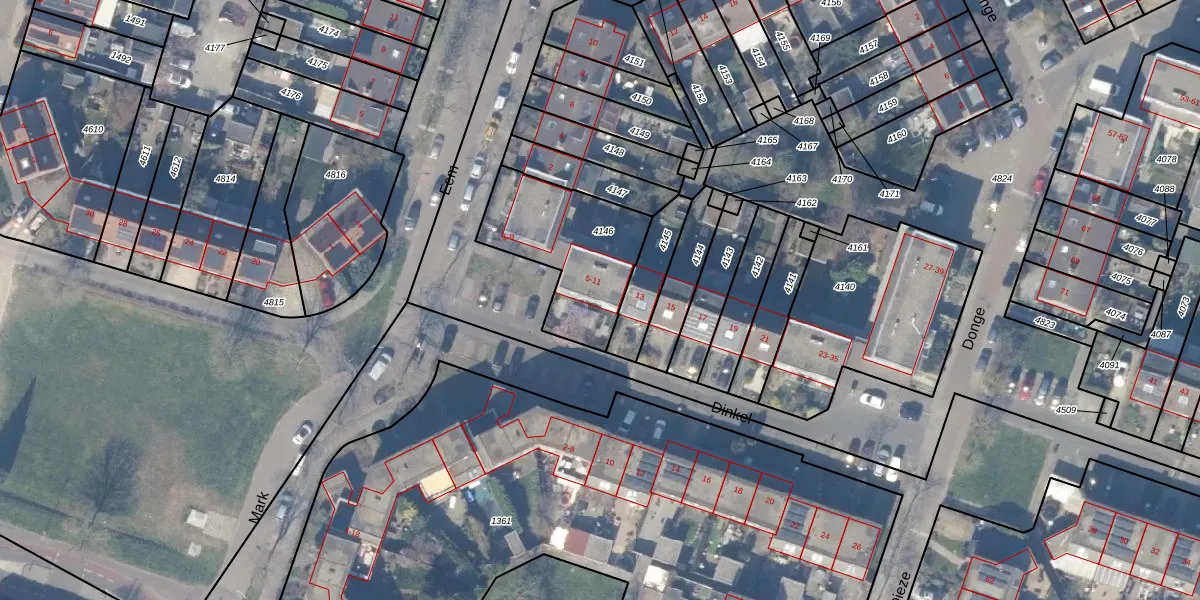 Het perceel waarop Dinkel 7 staat heeft een oppervlakte van 470 m². Dit is een groot perceel. De perceeloppervlakte wordt geregistreerd door het Kadaster. Gedetailleerde informatie over de maten van dit perceel kunt u vinden in het rapport Kadastrale kaart met maatvoering van Dinkel 7.