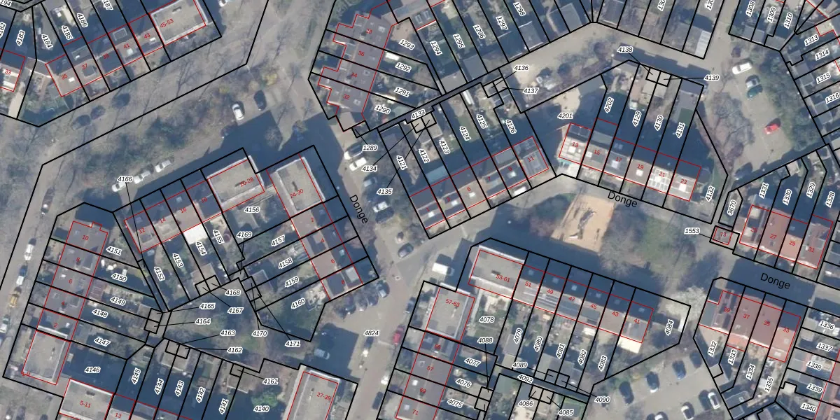 Het perceel waarop Donge 1 staat heeft een oppervlakte van 155 m². Dit is een middelgroot perceel. De perceeloppervlakte wordt geregistreerd door het Kadaster. Gedetailleerde informatie over de maten van dit perceel kunt u vinden in het rapport Kadastrale kaart met maatvoering van Donge 1.