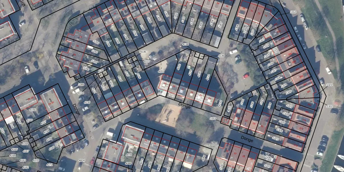 Het perceel waarop Donge 15 staat heeft een oppervlakte van 169 m². Dit is een middelgroot perceel. De perceeloppervlakte wordt geregistreerd door het Kadaster. Gedetailleerde informatie over de maten van dit perceel kunt u vinden in het rapport Kadastrale kaart met maatvoering van Donge 15.