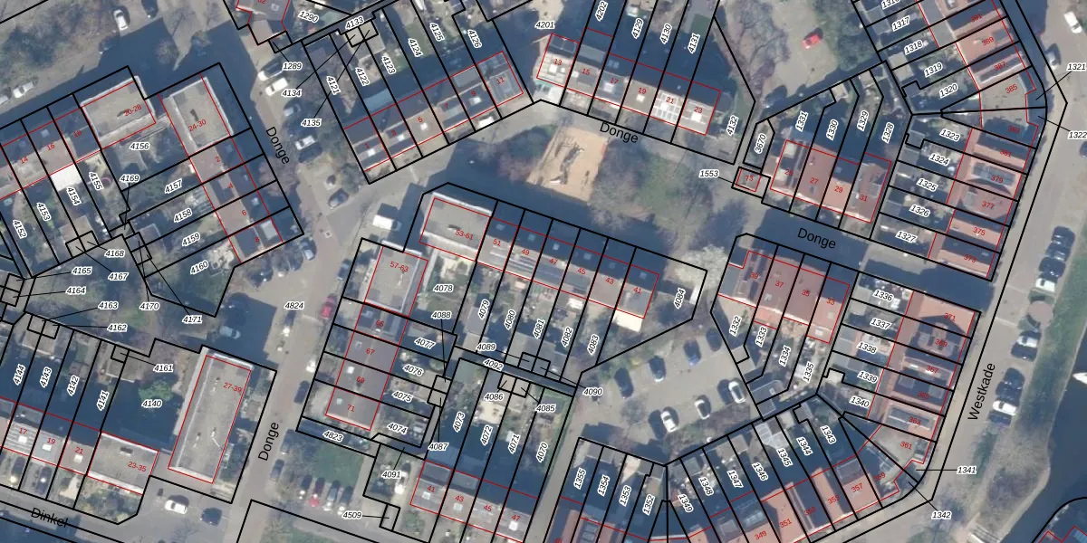 Gebruik de zoekbalk of klik op een perceel voor informatie over de adressen binnen dit perceel.