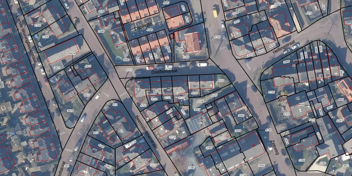 Doolhofstraat 1 is gelegen op kadastraal perceel HZN00D3712. Deze kadastrale aanduiding is uniek en wordt gebruikt door het Kadaster om eigendomsrechten en andere zakelijke rechten vast te leggen. Het perceel maakt onderdeel uit van de kadastrale gemeente Huizen.