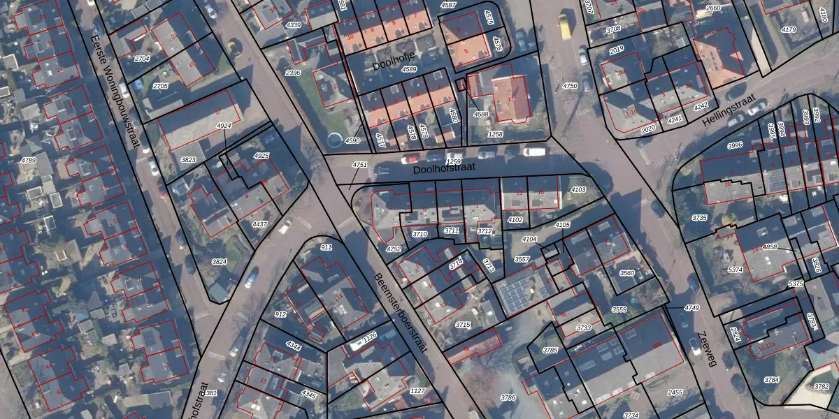Doolhofstraat 5 is gelegen op kadastraal perceel HZN00D3710. Deze kadastrale aanduiding is uniek en wordt gebruikt door het Kadaster om eigendomsrechten en andere zakelijke rechten vast te leggen. Het perceel maakt onderdeel uit van de kadastrale gemeente Huizen.