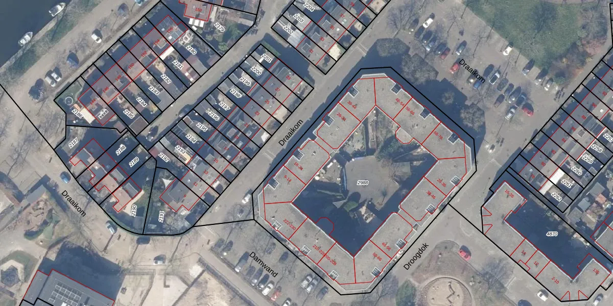 Draaikom 20 is gelegen op kadastraal perceel HZN00E2988. Deze kadastrale aanduiding is uniek en wordt gebruikt door het Kadaster om eigendomsrechten en andere zakelijke rechten vast te leggen. Het perceel maakt onderdeel uit van de kadastrale gemeente Huizen.