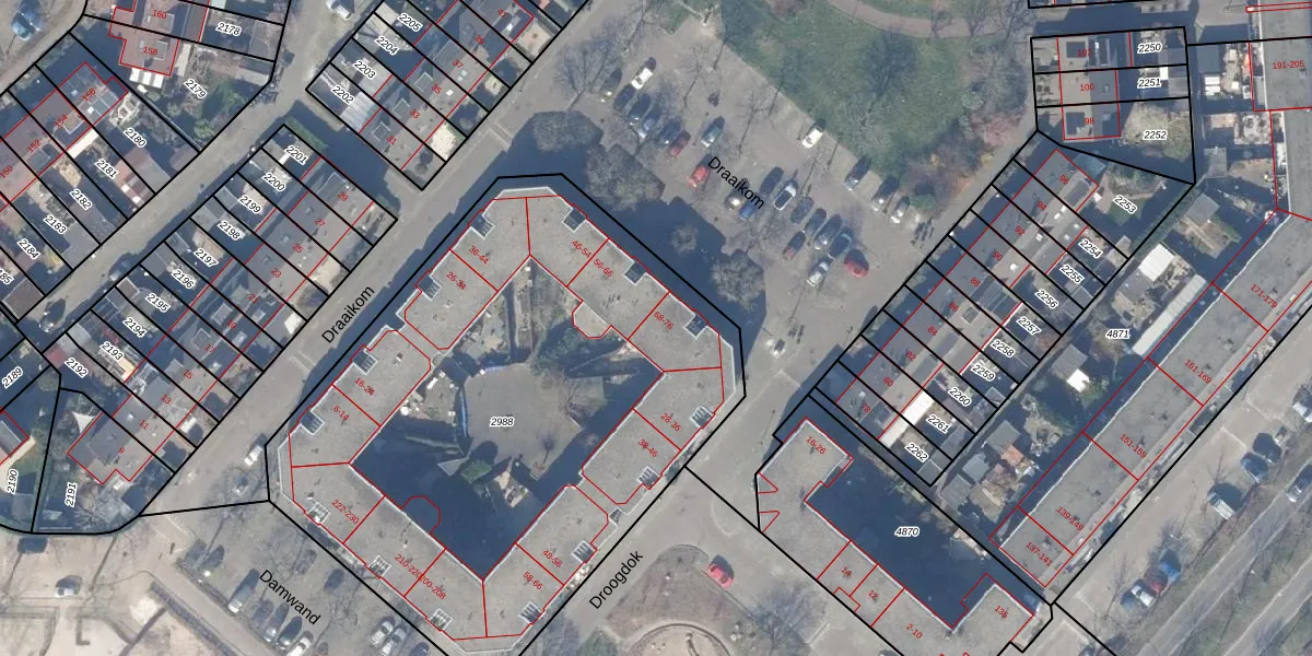 Draaikom 70 is gelegen op kadastraal perceel HZN00E2988. Deze kadastrale aanduiding is uniek en wordt gebruikt door het Kadaster om eigendomsrechten en andere zakelijke rechten vast te leggen. Het perceel maakt onderdeel uit van de kadastrale gemeente Huizen.