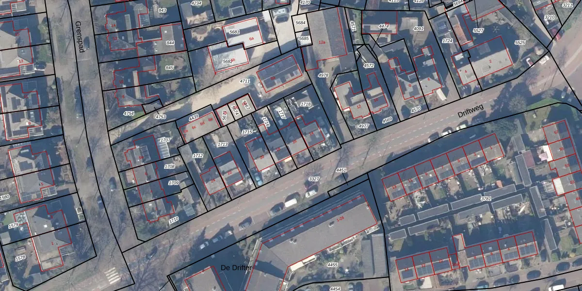 Driftweg 16 is gelegen op kadastraal perceel HZN00D1717. Deze kadastrale aanduiding is uniek en wordt gebruikt door het Kadaster om eigendomsrechten en andere zakelijke rechten vast te leggen. Het perceel maakt onderdeel uit van de kadastrale gemeente Huizen.