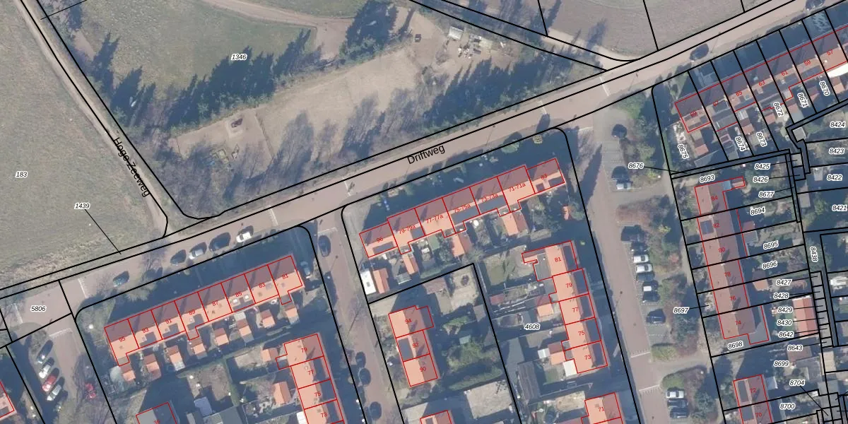Driftweg 77 is gelegen op kadastraal perceel HZN00B4608. Deze kadastrale aanduiding is uniek en wordt gebruikt door het Kadaster om eigendomsrechten en andere zakelijke rechten vast te leggen. Het perceel maakt onderdeel uit van de kadastrale gemeente Huizen.