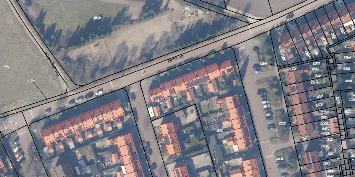 Het perceel waarop Driftweg 77-a staat heeft een oppervlakte van 3320 m². Dit is een zeer groot perceel. De perceeloppervlakte wordt geregistreerd door het Kadaster. Gedetailleerde informatie over de maten van dit perceel kunt u vinden in het rapport Kadastrale kaart met maatvoering van Driftweg 77-a.