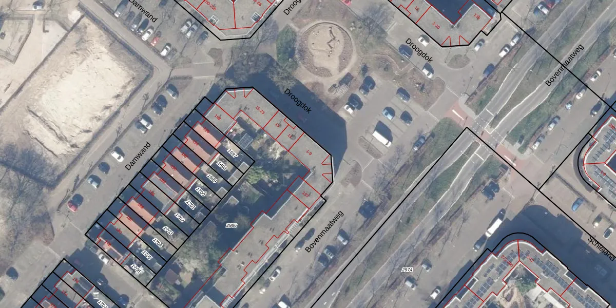 Het perceel waarop Droogdok 5 staat heeft een oppervlakte van 2218 m². Dit is een zeer groot perceel. De perceeloppervlakte wordt geregistreerd door het Kadaster. Gedetailleerde informatie over de maten van dit perceel kunt u vinden in het rapport Kadastrale kaart met maatvoering van Droogdok 5.