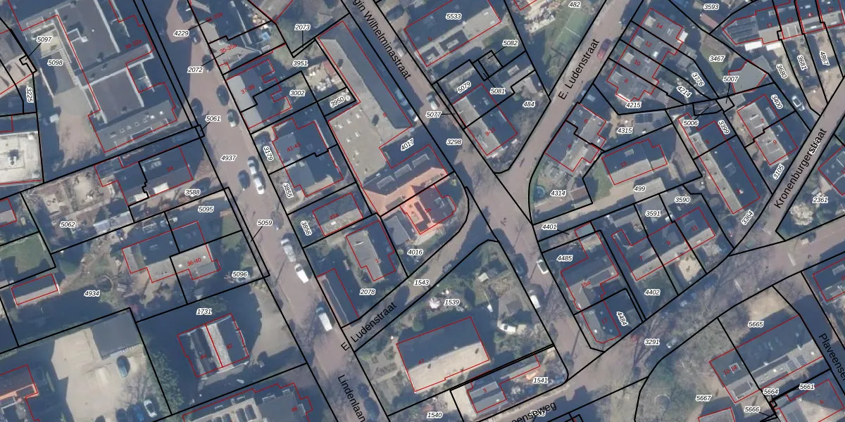 E. Ludenstraat 1-a is gelegen op kadastraal perceel HZN00D4016. Deze kadastrale aanduiding is uniek en wordt gebruikt door het Kadaster om eigendomsrechten en andere zakelijke rechten vast te leggen. Het perceel maakt onderdeel uit van de kadastrale gemeente Huizen.