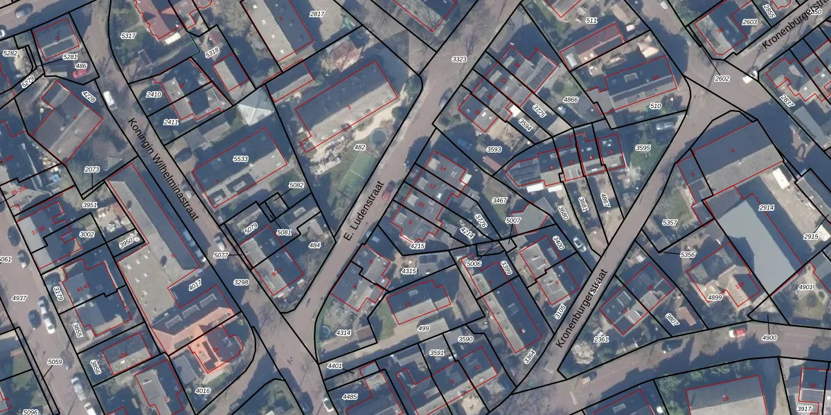E. Ludenstraat 10 is gelegen op kadastraal perceel HZN00D4214. Deze kadastrale aanduiding is uniek en wordt gebruikt door het Kadaster om eigendomsrechten en andere zakelijke rechten vast te leggen. Het perceel maakt onderdeel uit van de kadastrale gemeente Huizen.
