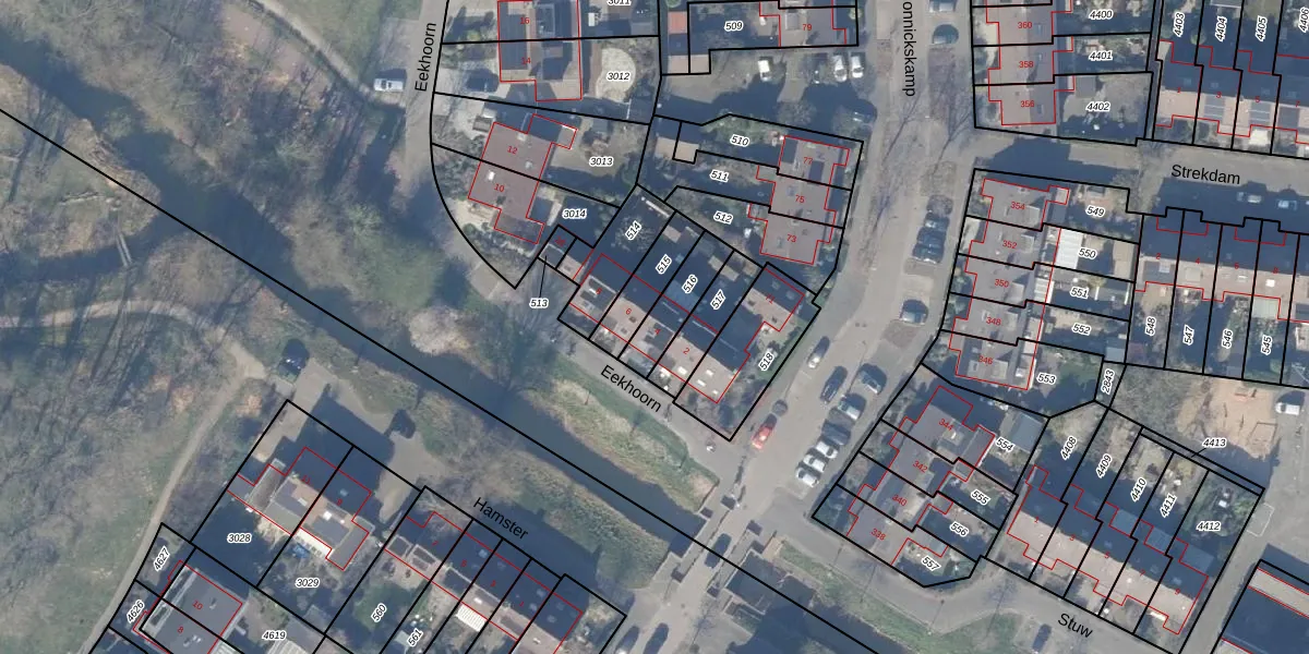 Gebruik de zoekbalk of klik op een perceel voor informatie over de adressen binnen dit perceel.