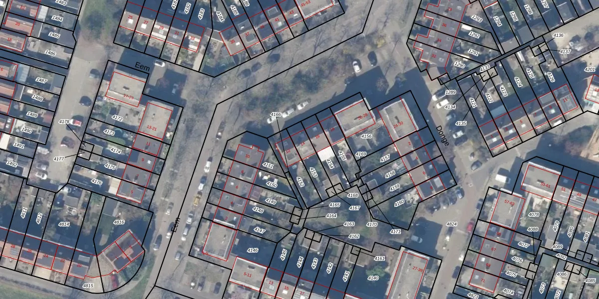 Gebruik de zoekbalk of klik op een perceel voor informatie over de adressen binnen dit perceel.