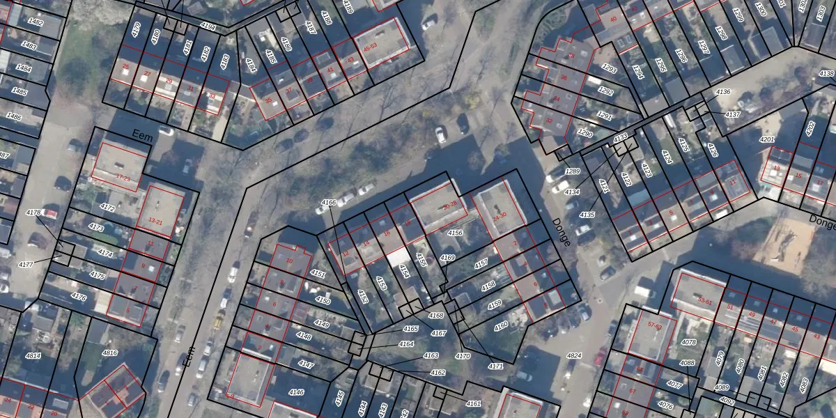 Het perceel waarop Eem 22 staat heeft een oppervlakte van 428 m². Dit is een groot perceel. De perceeloppervlakte wordt geregistreerd door het Kadaster. Gedetailleerde informatie over de maten van dit perceel kunt u vinden in het rapport Kadastrale kaart met maatvoering van Eem 22.