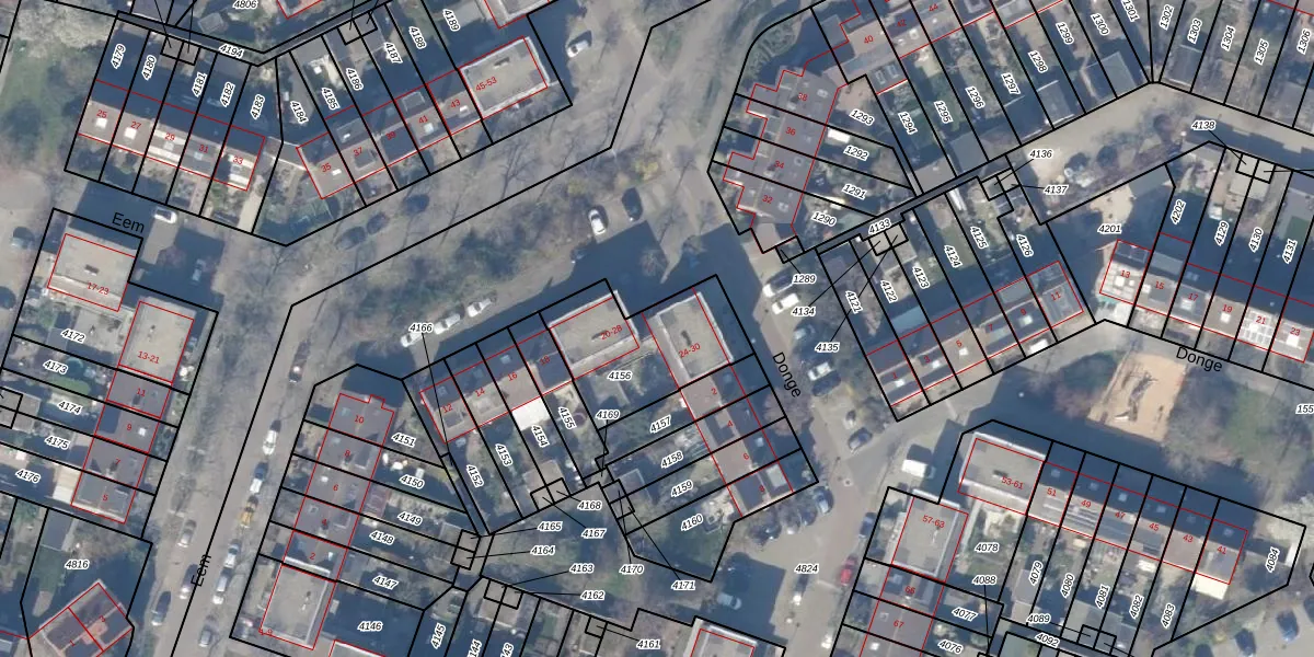 Het perceel waarop Eem 24 staat heeft een oppervlakte van 428 m². Dit is een groot perceel. De perceeloppervlakte wordt geregistreerd door het Kadaster. Gedetailleerde informatie over de maten van dit perceel kunt u vinden in het rapport Kadastrale kaart met maatvoering van Eem 24.