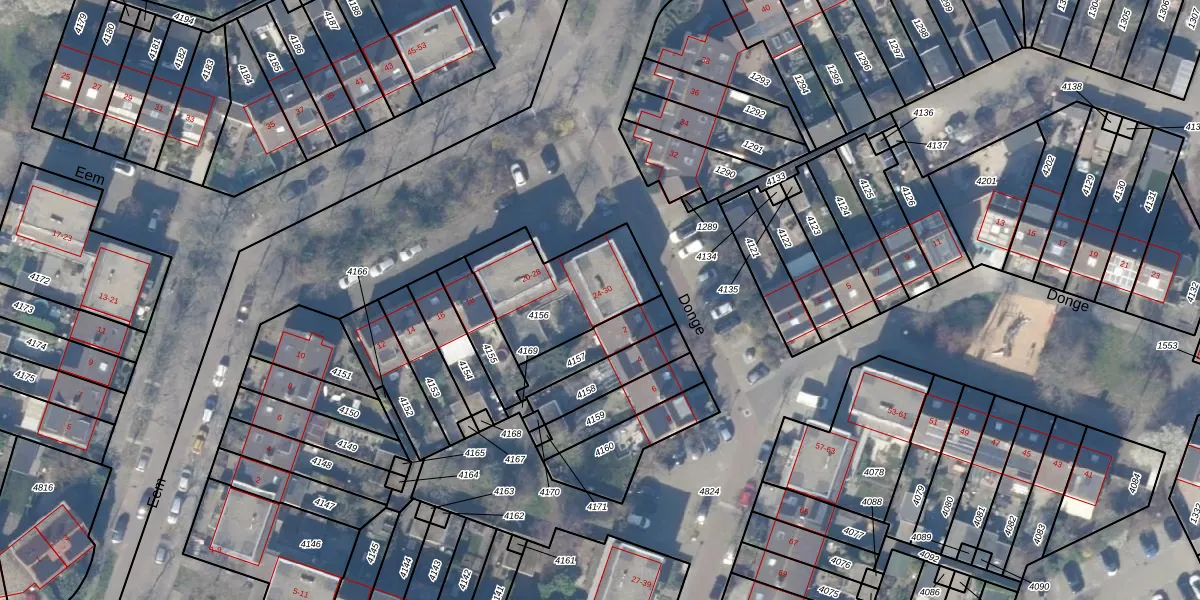 Het perceel waarop Eem 30 staat heeft een oppervlakte van 428 m². Dit is een groot perceel. De perceeloppervlakte wordt geregistreerd door het Kadaster. Gedetailleerde informatie over de maten van dit perceel kunt u vinden in het rapport Kadastrale kaart met maatvoering van Eem 30.