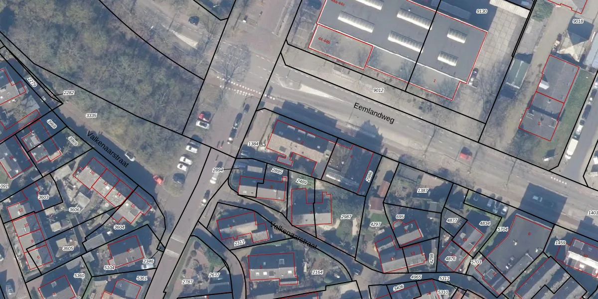 Het perceel waarop Eemlandweg 2-a staat heeft een oppervlakte van 476 m². Dit is een groot perceel. De perceeloppervlakte wordt geregistreerd door het Kadaster. Gedetailleerde informatie over de maten van dit perceel kunt u vinden in het rapport Kadastrale kaart met maatvoering van Eemlandweg 2-a.