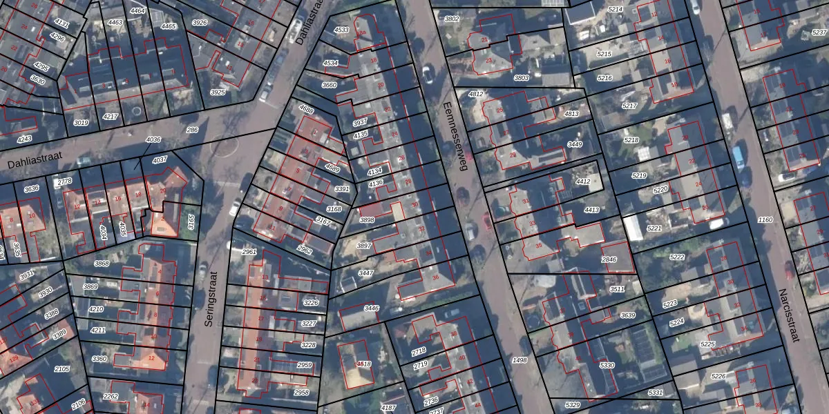 Gebruik de zoekbalk of klik op een perceel voor informatie over de adressen binnen dit perceel.