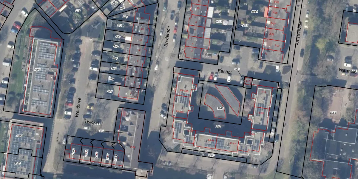Eeshof 113 is gelegen op kadastraal perceel HZN00E989. Deze kadastrale aanduiding is uniek en wordt gebruikt door het Kadaster om eigendomsrechten en andere zakelijke rechten vast te leggen. Het perceel maakt onderdeel uit van de kadastrale gemeente Huizen.