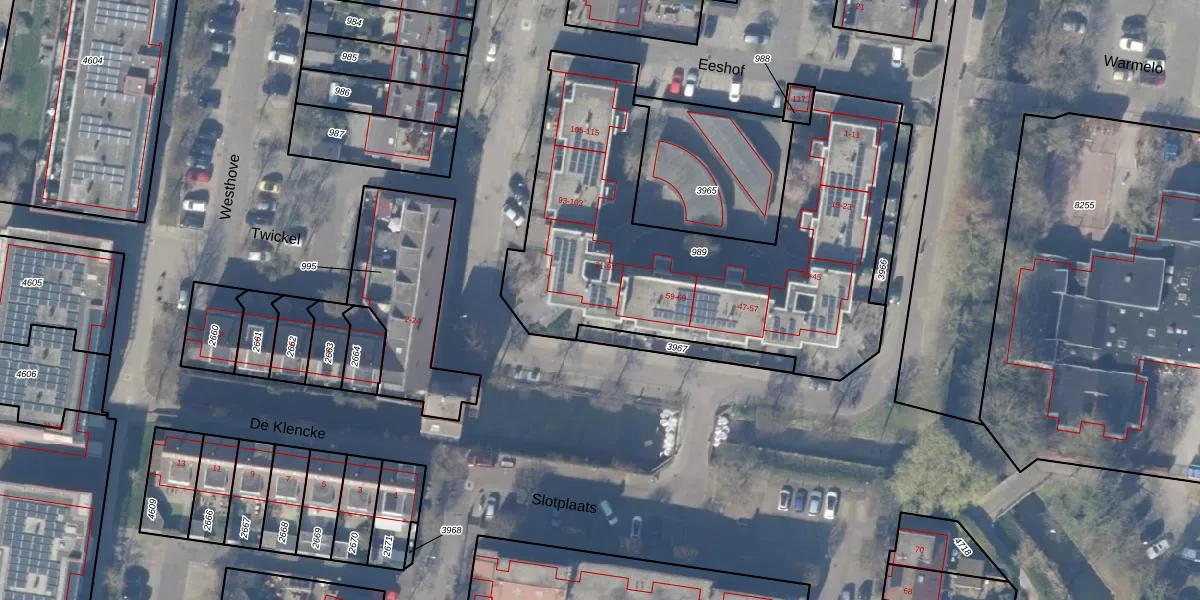 Het perceel waarop Eeshof 87 staat heeft een oppervlakte van 2045 m². Dit is een zeer groot perceel. De perceeloppervlakte wordt geregistreerd door het Kadaster. Gedetailleerde informatie over de maten van dit perceel kunt u vinden in het rapport Kadastrale kaart met maatvoering van Eeshof 87.