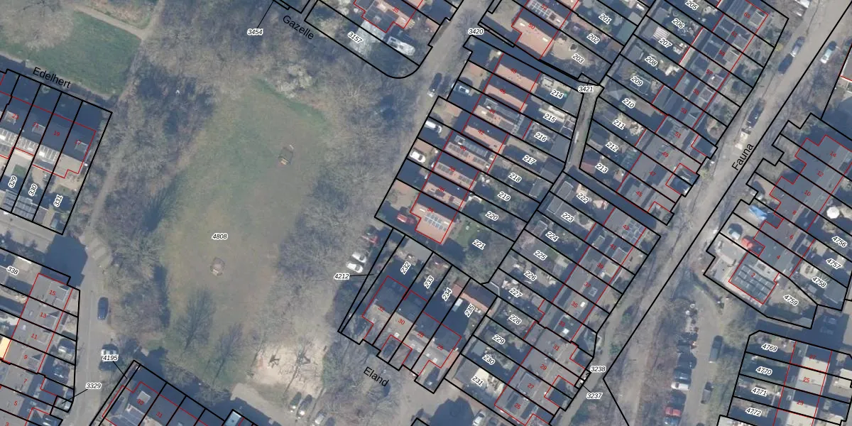 Het perceel waarop Eland 34 staat heeft een oppervlakte van 359 m². Dit is een groot perceel. De perceeloppervlakte wordt geregistreerd door het Kadaster. Gedetailleerde informatie over de maten van dit perceel kunt u vinden in het rapport Kadastrale kaart met maatvoering van Eland 34.