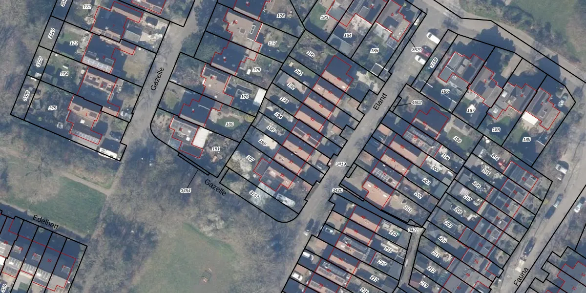 Het perceel waarop Eland 39 staat heeft een oppervlakte van 162 m². Dit is een middelgroot perceel. De perceeloppervlakte wordt geregistreerd door het Kadaster. Gedetailleerde informatie over de maten van dit perceel kunt u vinden in het rapport Kadastrale kaart met maatvoering van Eland 39.